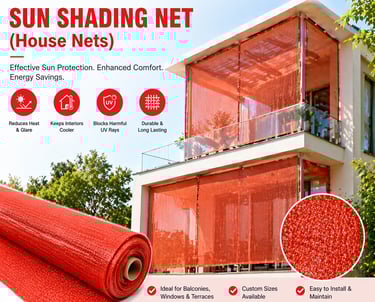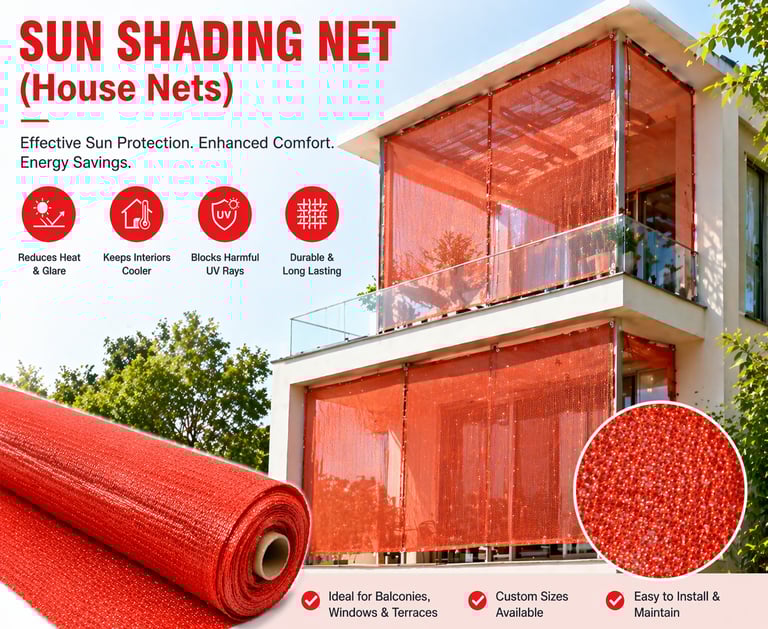 Sun shading nets are designed to reduce heat and glare, creating a cooler and more comfortable living space. They effectively block harmful UV rays while allowing natural airflow and light. Made from durable, UV-stabilized materials, they ensure long-lasting performance in outdoor conditions. Ideal for balconies, windows, and terraces, they enhance both protection and energy efficiency.
